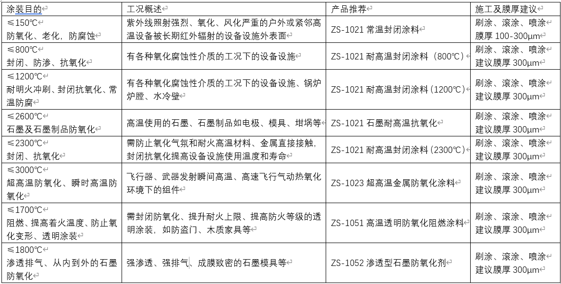 6、應(yīng)用在≤2300℃,防止氧化氣氛和耐火高溫材料、金屬直接接觸,封閉抗氧化提高設(shè)備設(shè)施使用溫度和壽命的涂裝——ZS-1021(2300℃)