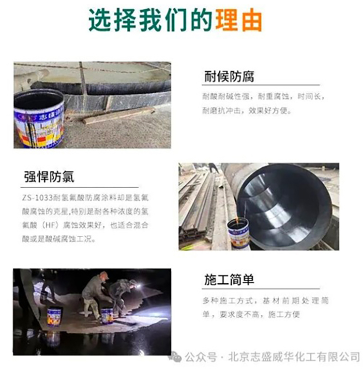 2、廢氣排放煙道與煙囪:磷酸生產(chǎn)過程中產(chǎn)生的含氟廢氣(HF、SiF4)對煙道和煙囪內(nèi)壁具有強腐蝕性。ZS-1033的耐氟化物和耐酸性能,可顯著降低煙道煙囪的腐蝕速率。